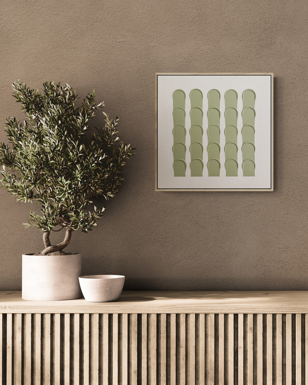 Später hat es mich mehr zu abstrakter, texturierter Kunst hingezogen – reduziert, ruhig, klar. Diese Werke erzählen von meinem Alltag als Mama und Berufstätige, von den kleinen Momenten der Stille, die mir helfen, bei mir zu bleiben.