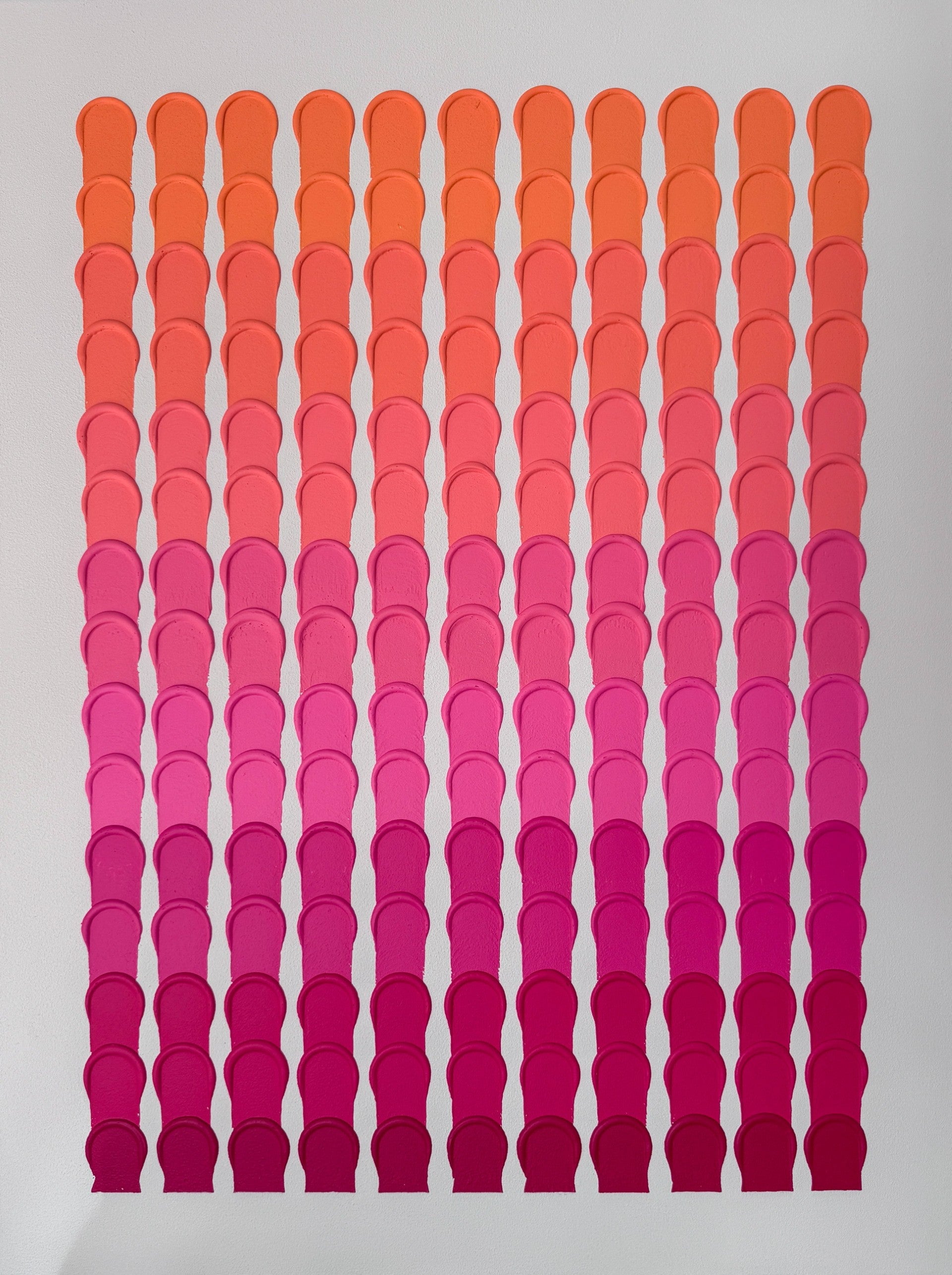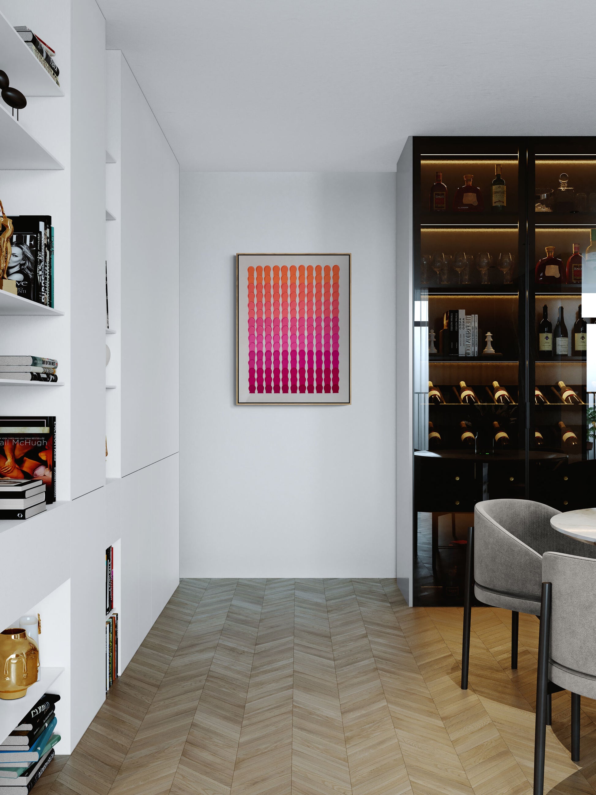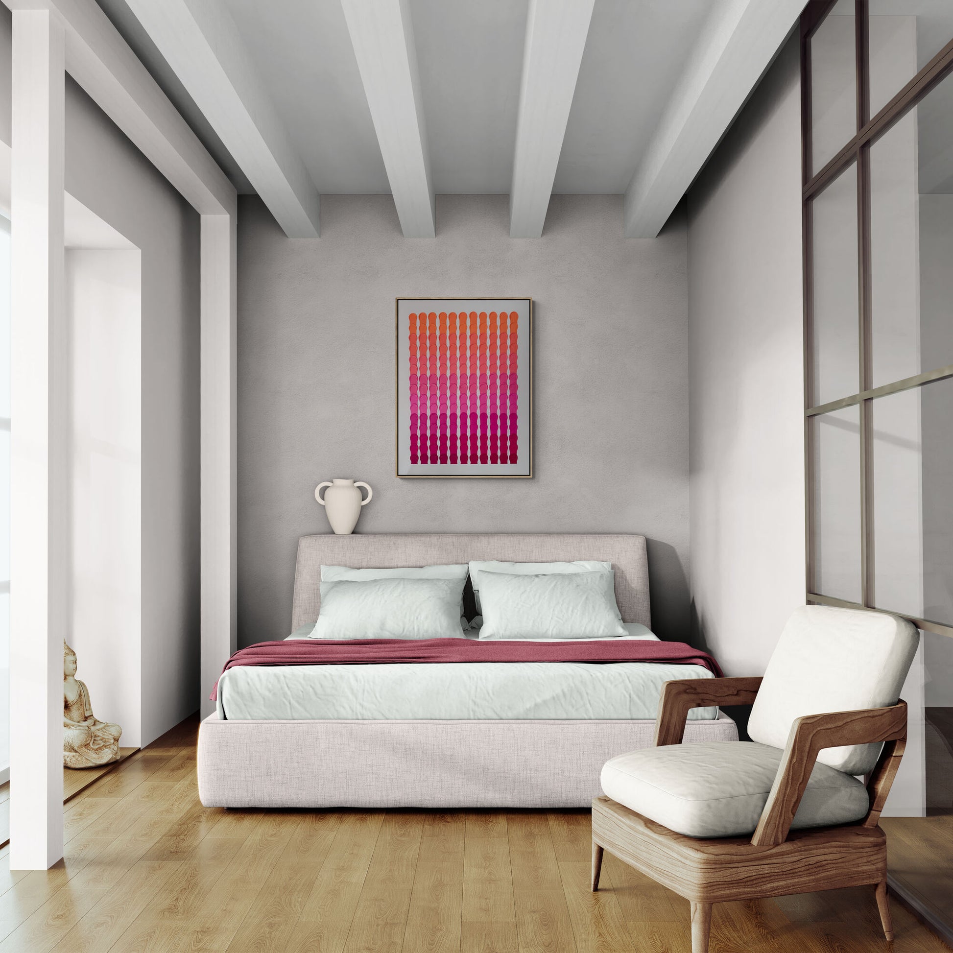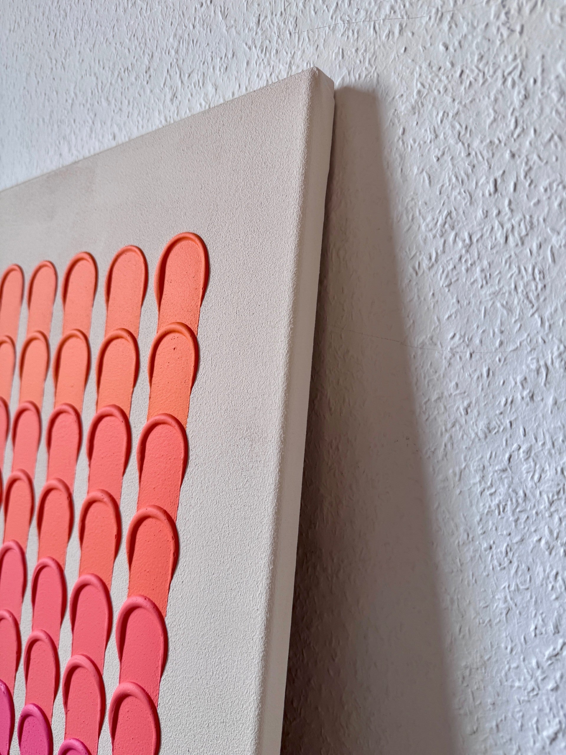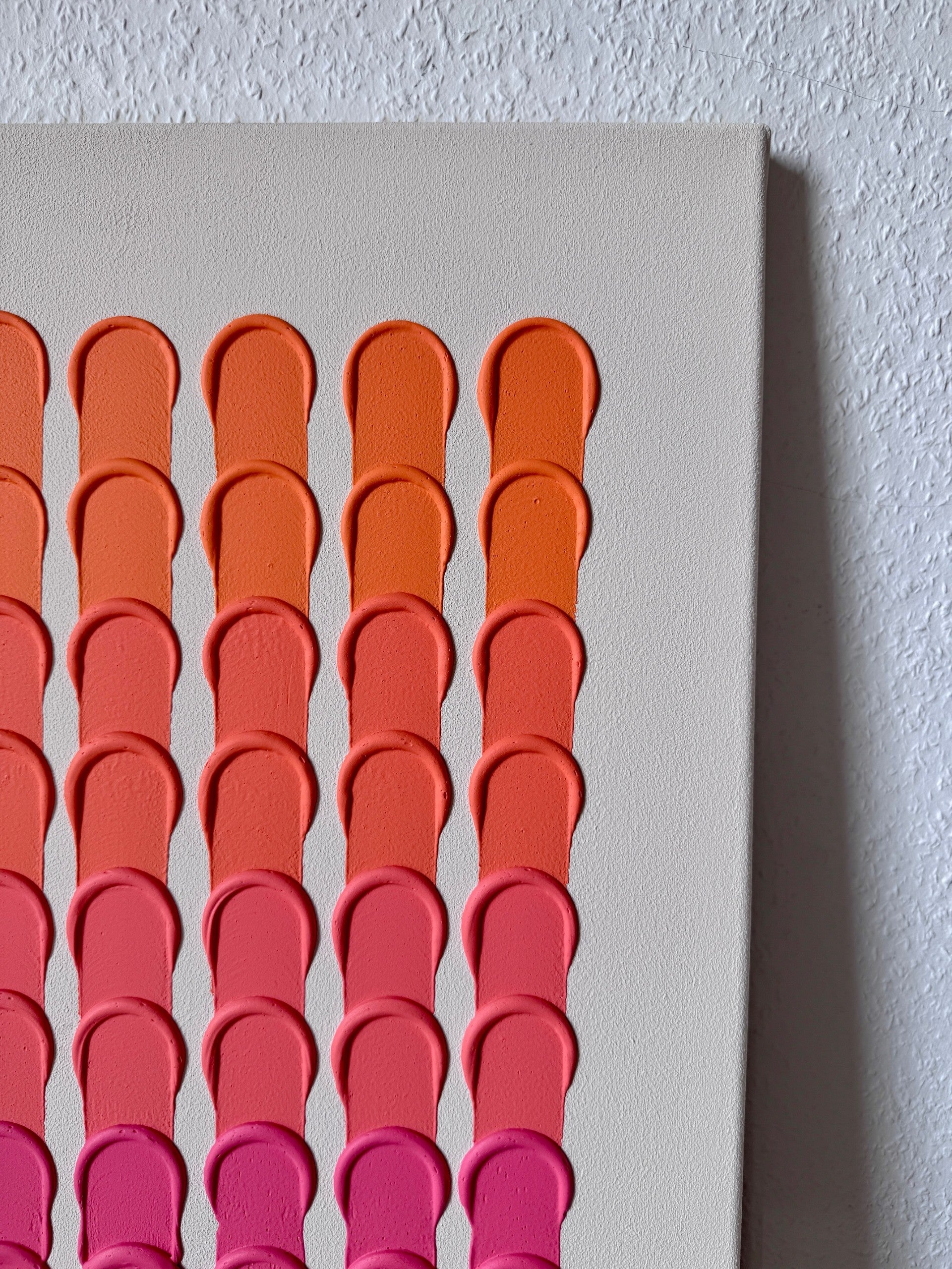 This modern abstract artwork features flowing gradients that shift from warm orange to vibrant pink. Soft drips and a delicately textured surface add movement, depth, and an elegant interplay of light and shadow. The transition between the colors evokes those brief, magical moments between day and night—radiant, calm, and full of energy.
